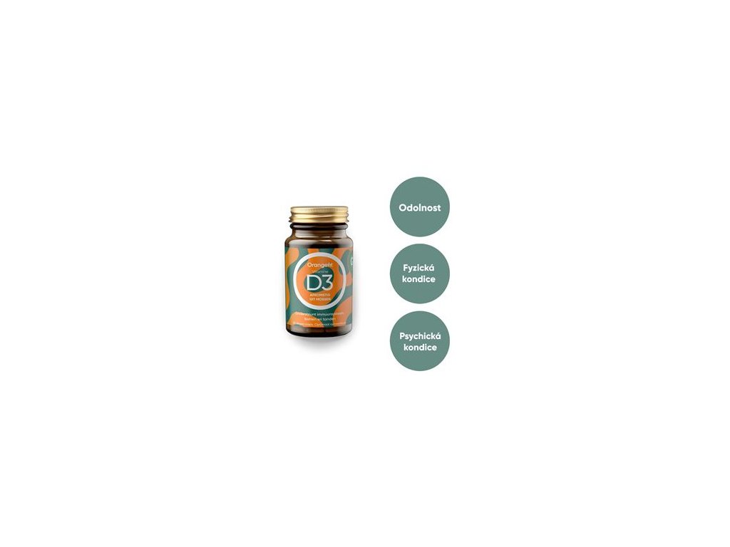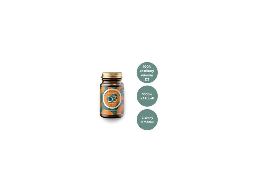 Orangefit Vitamín D3 má navíc obrovský benefit - je 100% rostlinný, získaný z mechu, takže je vhodný i pro vegany. Navíc je šetrný k zažívání. Doporučená denní dávka se pohybuje okolo 400-800iu, v jedné kapsli Vitamínu D3 Orangefit najdete 25 µg (1000iu) vitamínu, takže máte na den více než vystaráno.