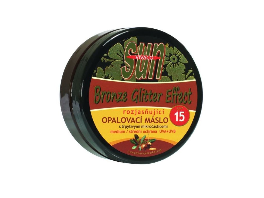 Vivaco Sun Glitter effect opalovací máslo s bio arganovým olejem SPF 15 200 ml
