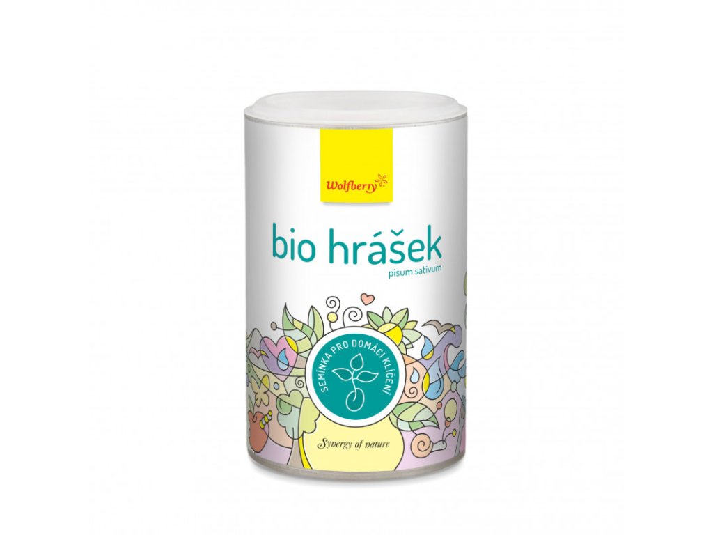 Hrášek Wolfberry BIO semínka na klíčení 200 g. Klíčky s jemnou hráškovou chutí si lehce vypěstujete sami doma. Budete tak mít po ruce chutnou svačinu, zeleninovou přílohu a čerstvý zdroj vitamínů a minerálů. Zkuste s nimi doladit jakýkoli slaný pokrm, třeba salát nebo nudle.