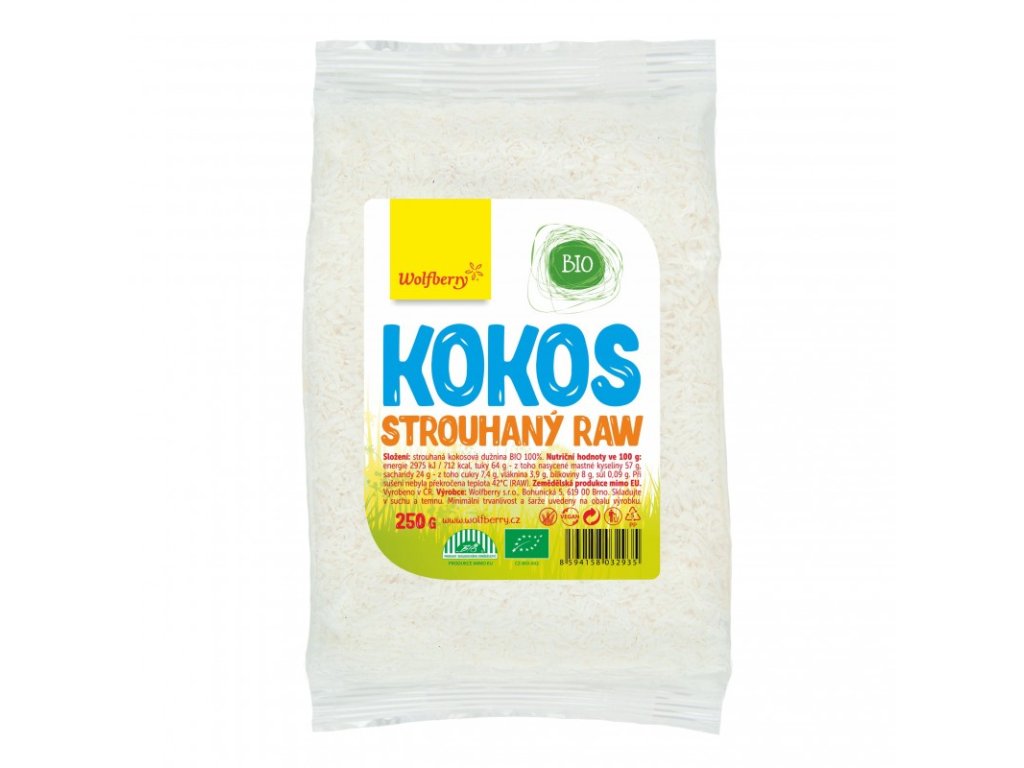 Wolfberry Strouhaný kokos v BIO a RAW kvalitě. Neslazená, nepražená, křupavá a voňavá potravina v té nejvyšší kvalitě.
