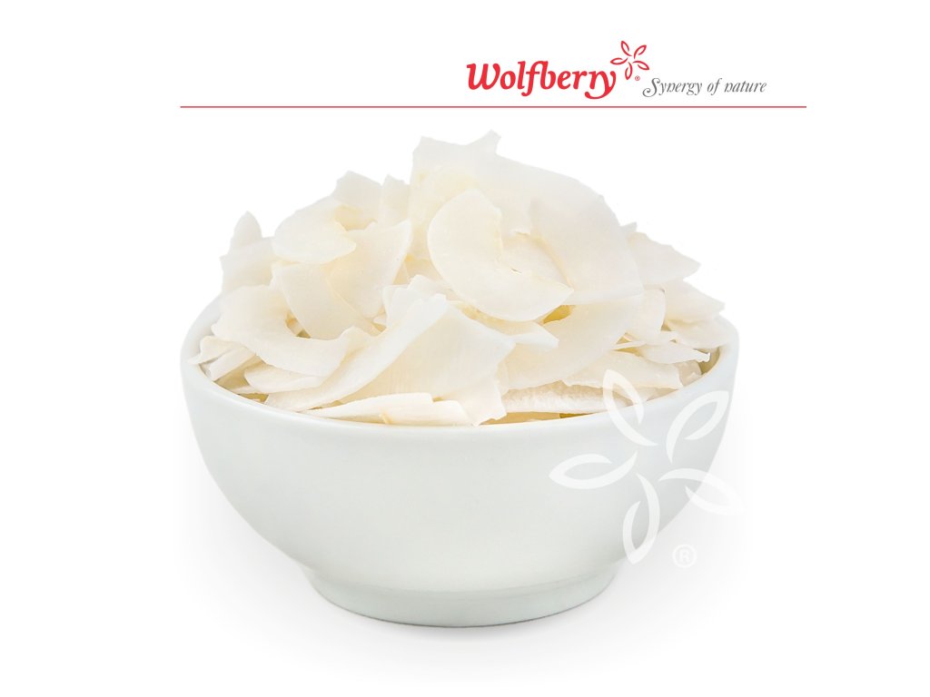 Wolfberry kokosové chipsy jsou krásně křupavé a neuvěřitelně voňavé. Získávají se z jader kokosových ořechů, které se nastrouhají na tenké plátky a poté se nechají šetrně usušit tak, aby v nich zůstala zachována nejen exotická vůně, ale i všechny minerály a vitamíny. 100 g kokosových chipsů totiž obsahuje například čtvrtinu referenční hodnoty příjmu draslíku a téměř třetinu referenční hodnoty příjmu fosforu, což jsou důležité látky pro stavbu lidského těla.