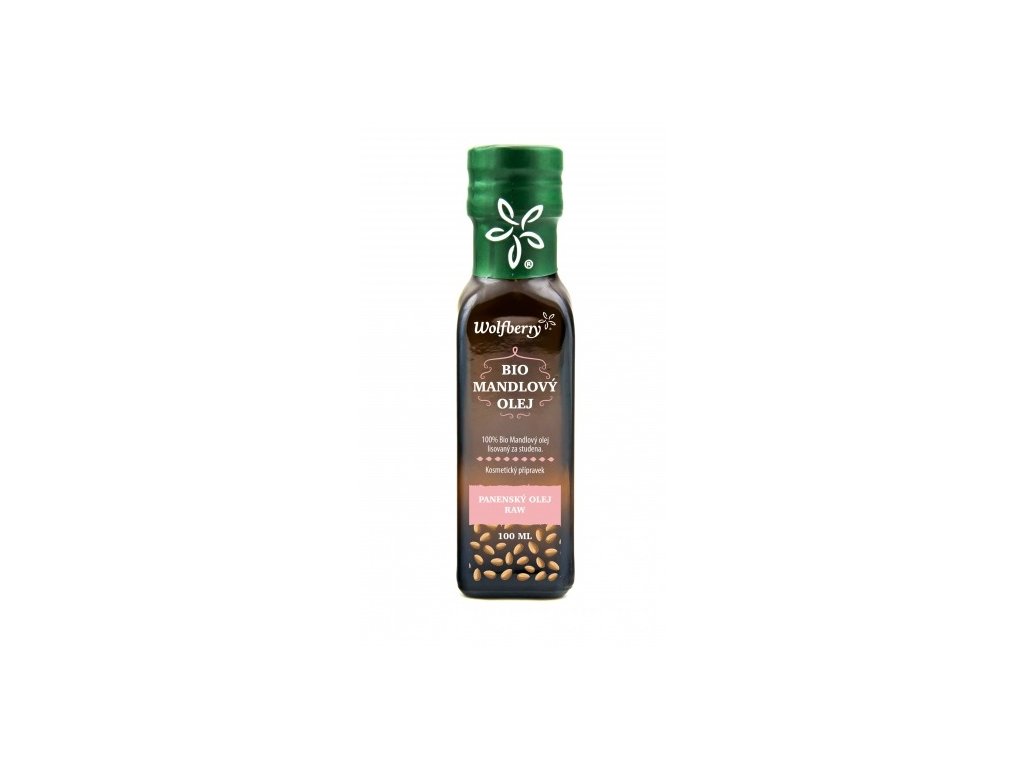 Mandlový olej BIO 100 ml Wolfberry lisovaný za studena z čerstvých mandlí. Je určený pro kosmetické účely, k masážím a do koupele. Je ceněný zejména pro vysoký obsah nenasycených mastných kyselin.