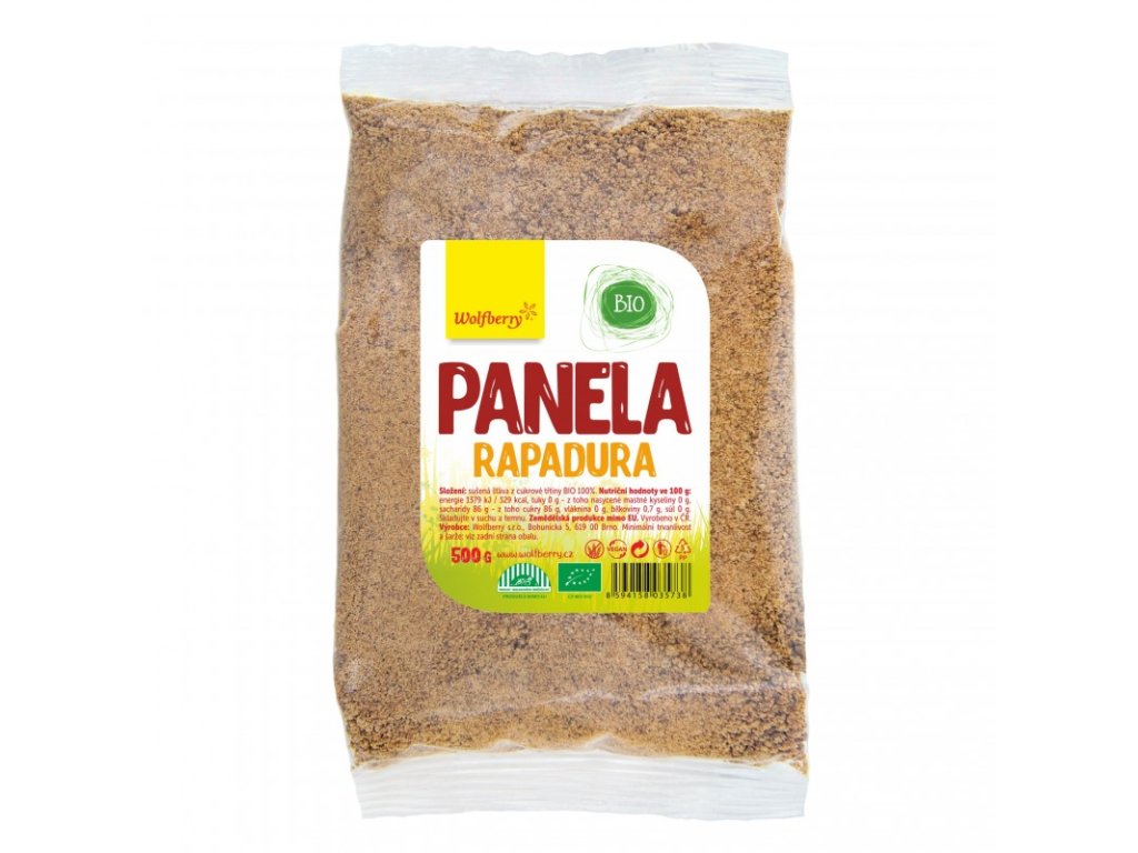 Sladidlo Panela BIO 500 g Wolfberry je usušená šťáva z cukrové třtiny, která si zachovává všechny živiny, které se v cukrové třtině nacházejí. Zpracovává se tak, že se nejprve z rostlin šetrně vymačká šťáva, která se následně vysuší a po té se vzniklé krystalky lehce rozdrtí. Na rozdíl od třtinového cukru, ze kterého se odstraňuje melasa jako vedlejší produkt se spoustou nutričně hodnotných látek, si panela zachovává všechny benefity.
