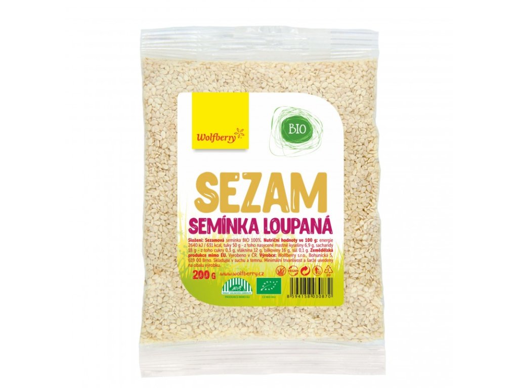 Sezam loupaný BIO 200g Wolfberry vhodný jak přímé konzumaci, tak k tepelnému zpracování. Obsahuje celou řadu vitamínů, minerálů a dalších prospěšných látek. Produkt je v BIO kvalitě.