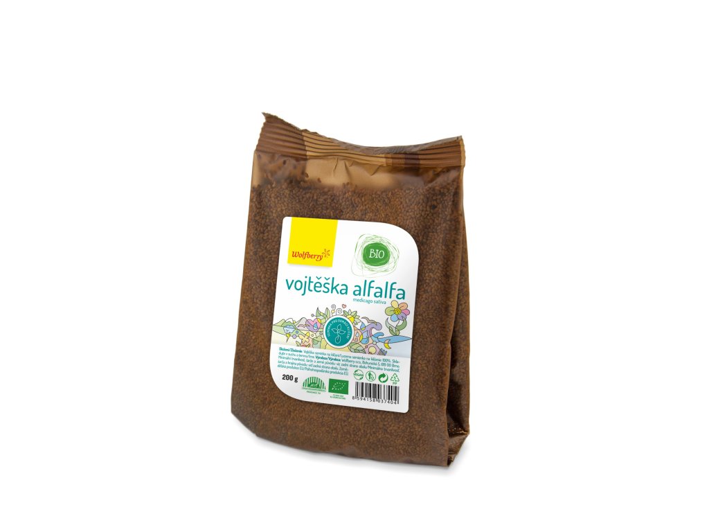 Vojtěška Wolfberry BIO semínka na klíčení 200 g. Bohatě ozdobený chléb křupavými klíčky Vojtěšky dostane jemně mátovou chuť. Výhonky jsou chutné, výživné a především ty doma čerstvě vypěstované jsou vynikajícím zdrojem energie, minerálů a vitamínů.