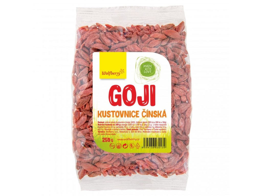 Wolfberry Goji kustovnice čínská je nejvyšší jakosti, protože se pěstuje v oblasti čínské provincie Ningxia, která je proslulá nejkvalitnějšími plody této rostliny na světě. Sušené bobule goji mají temně červenou barvu a chutnají asi tak, jako když zkombinujete třešně s brusinkami a šípky.