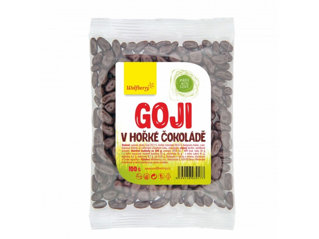 Wolfberry Goji Kustovnice čínská sušené plody v hořké čokoládě 100 g