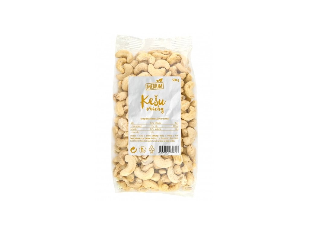 Kešu ořechy Medium 500 g. Vynikající nepražená a nesolená pochoutka jak k přímé konzumaci, tak na vaření a pečení.