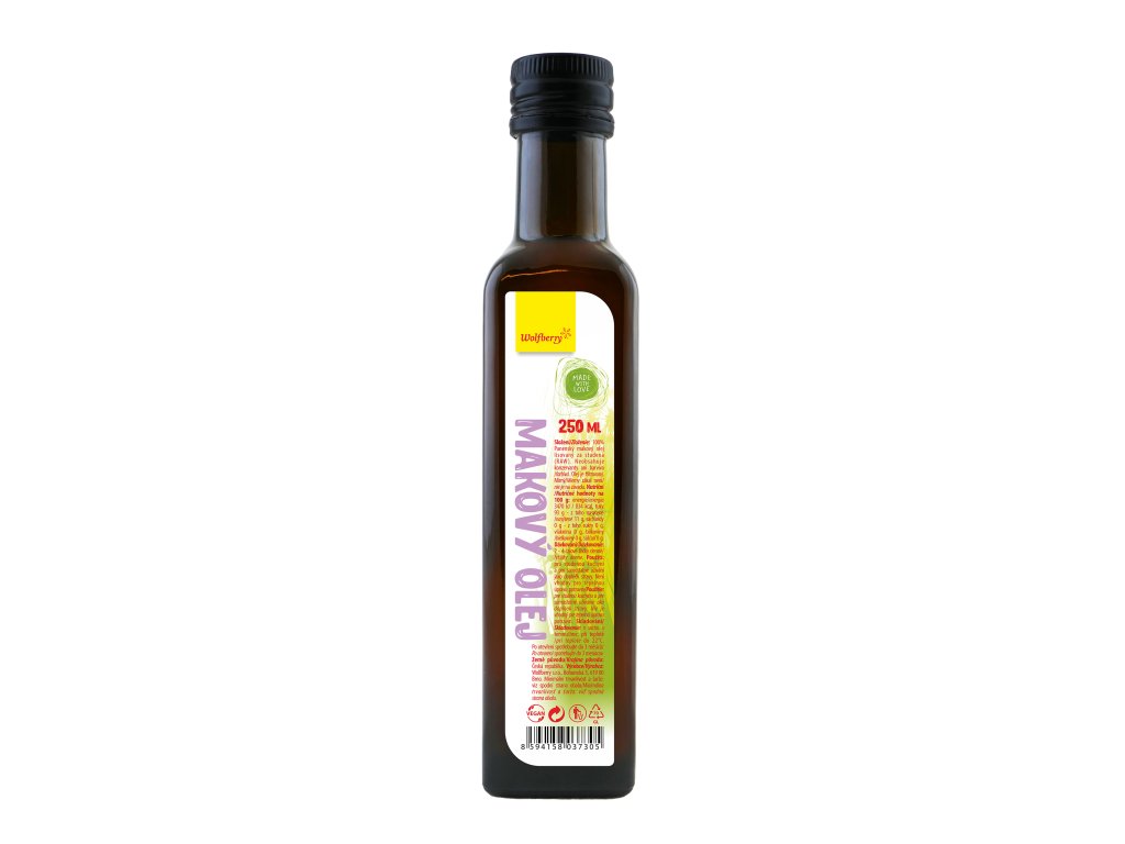 Makový olej Wolfberry je 100% olej lisovaný za studena ze semínek Máku setého neobsahující barviva ani konzervanty. Své uplatnění nachází ve studené kuchyni nebo také jako doplněk stravy. Panenský olej RAW.