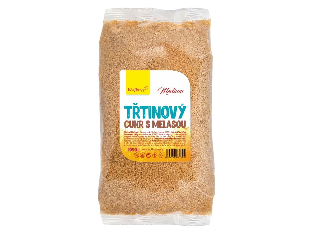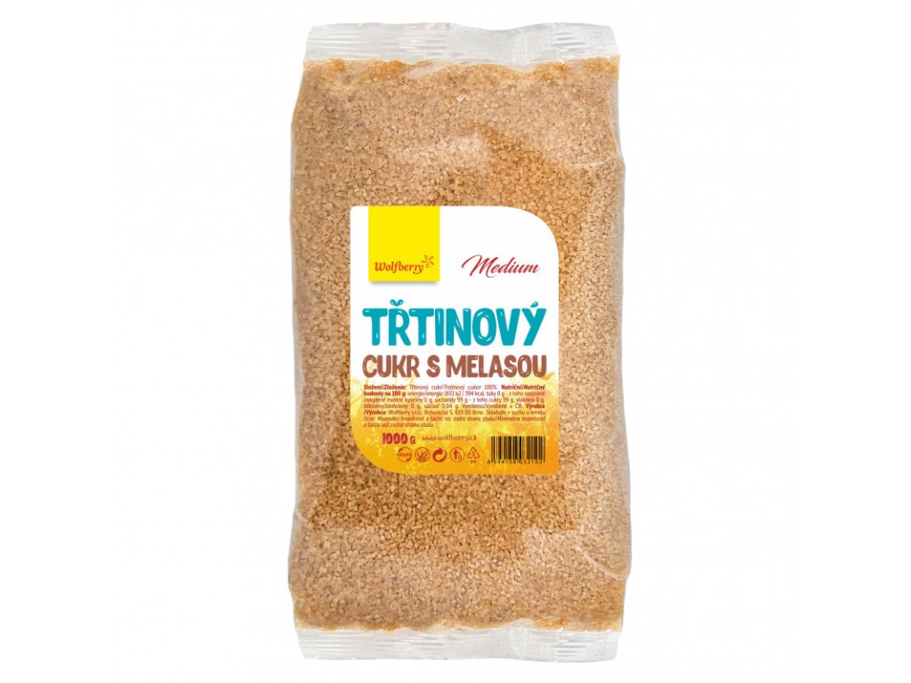 Wolfberry třtinový cukr s melasou se vyrábí velmi šetrnou krystalizací třtinové šťávy, díky čemuž v něm zůstává zachováno maximální množství vitamínů a minerálů, které rafinované cukry při jejich zpracování ztrácejí. Má čistou sladkou chuť, která má malinko karamelové a medové podtóny. Při pěstování cukrové třtiny, ze které se vyrábí, nebyly použity žádné pesticidy a třtina nebyla geneticky modifikovaná.