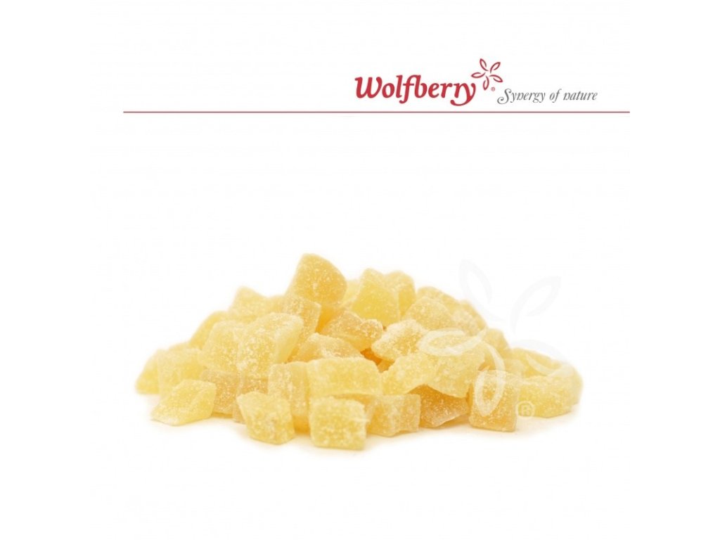 Kandovaný zázvor je vynikající a originální pochoutka. Jeho konzumace navíc přináší úlevu při nachlazení. Slazeno třtinovým sirupem.