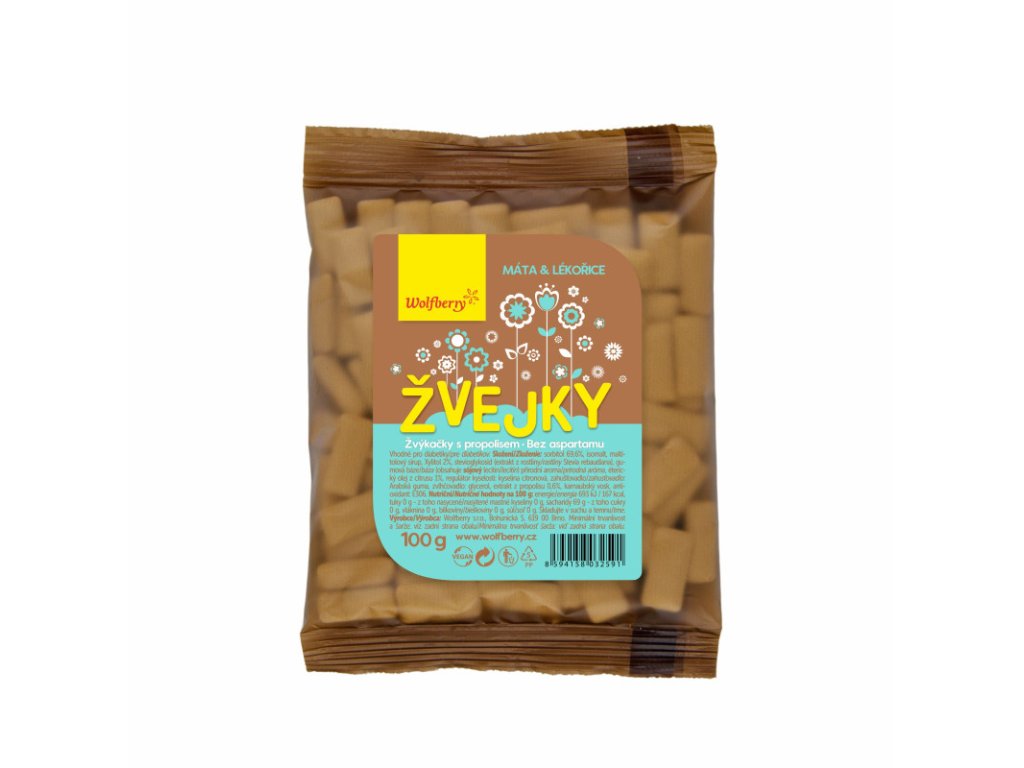 Wolfberry Žvejky s propolisem, máta + lékořice 100 g