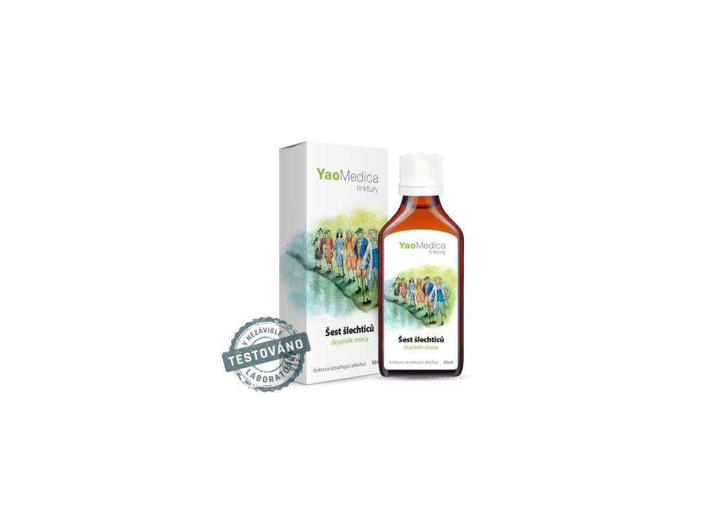 Jedna ze základních směsí tradiční čínské medicíny. Jejím hlavním úkolem je vyživovat Yin organismu, primárně Shen Yin (Yin Ledvin). V organismu máme dvě protikladné síly. Yang představuje sílu aktivní, dynamiku, funkci. Kdežto Yin je spíše materie, výživa, vláha. V Shen (ledvinách) by měly být tyto síly v rovnováze. Tvoří tam takovou zásobárnu energie, rezervoár. Ale tím, jak žijeme, jak náš organismus musí neustále vyrovnávat náš často nezdravý životní styl, tak energie z Ledvin ubývá. A buď ubývá více Yin nebo více Yang. Ale vždy se umenšují obě. K energetickému okruhu ledvin se řadí i nadledviny, zásobující organizmus stresovými hormony. Tinktura Šest šlechticů doplňuje Yin ledvin. Dokáže tak zmírňovat příznaky stárnutí.