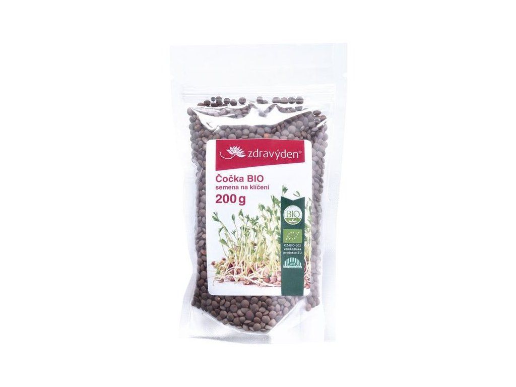 BIO semena čočky Zdravý den® určená k celoročnímu klíčení. Jsou čerstvou a kvalitní luštěninou vhodnou k přímé konzumaci nebo jako přísada do rozličných jídel. Mají jemnou chuť.