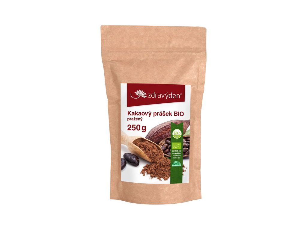 BIO kakaový prášek pražený Zdravý den® je určený na pečení, do dezertů, k dochucení müsli, koktejlů, kaší nebo proteinových a ovocných nápojů. Vzniká lisováním pražených kakaových bobů vypěstovaných podle pravidel ekologického zemědělství.