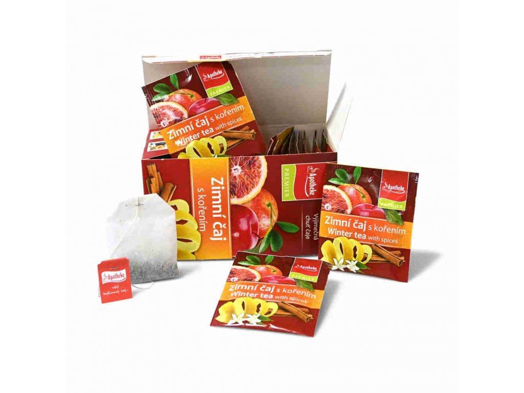 Kořeněný ovocný čaj pro příjemné zahřátí během zimních dní a večerů. Bylinný čaj aromatizovaný, porcovaný v nálevových sáčcích.