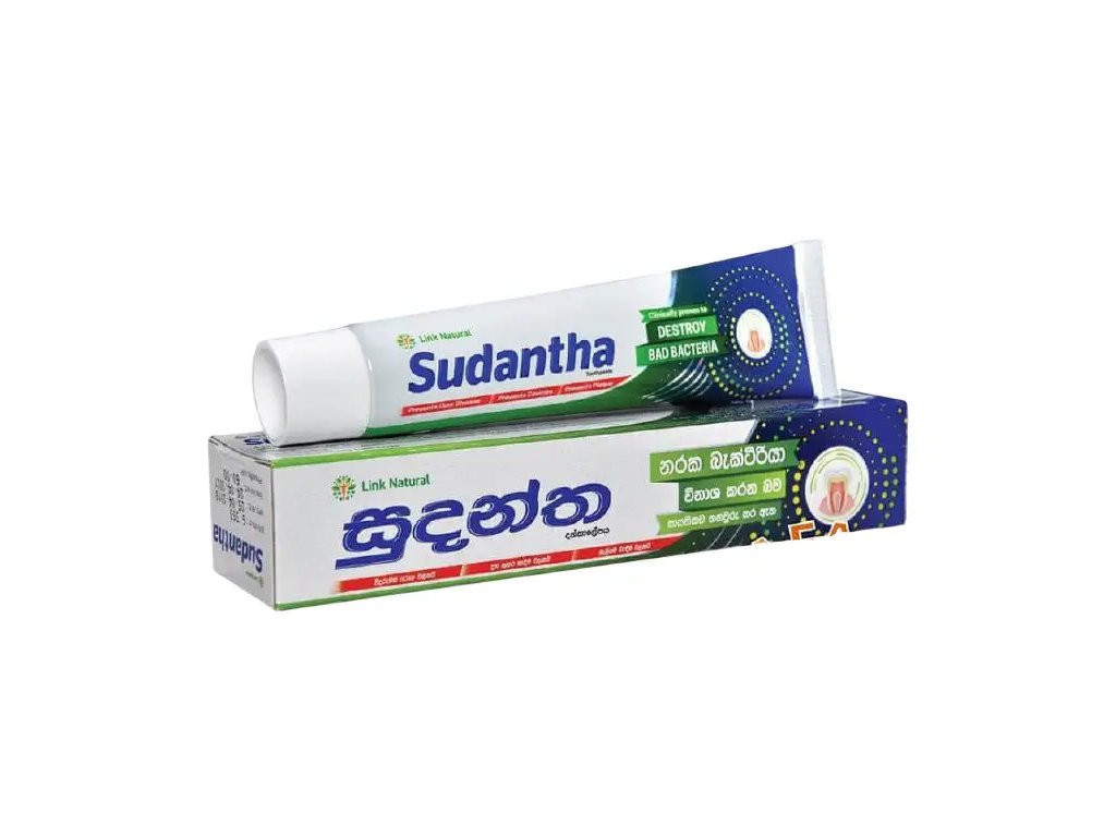 Bylinná zubní pasta pro kompletní ústní hygienu a péči o dásně bez fluoru. Pasta obsahuje extrakty z ájurvédských bylin (Vasaka, Opíhled skvělý, Vrcholák myrobalánový a další) známé svým antibakteriálním působením. Pravidelné čištění pastou Sudantha pomáhá v prevenci zubního kazu, odtsraňování zubního kamene a péči o dásně.